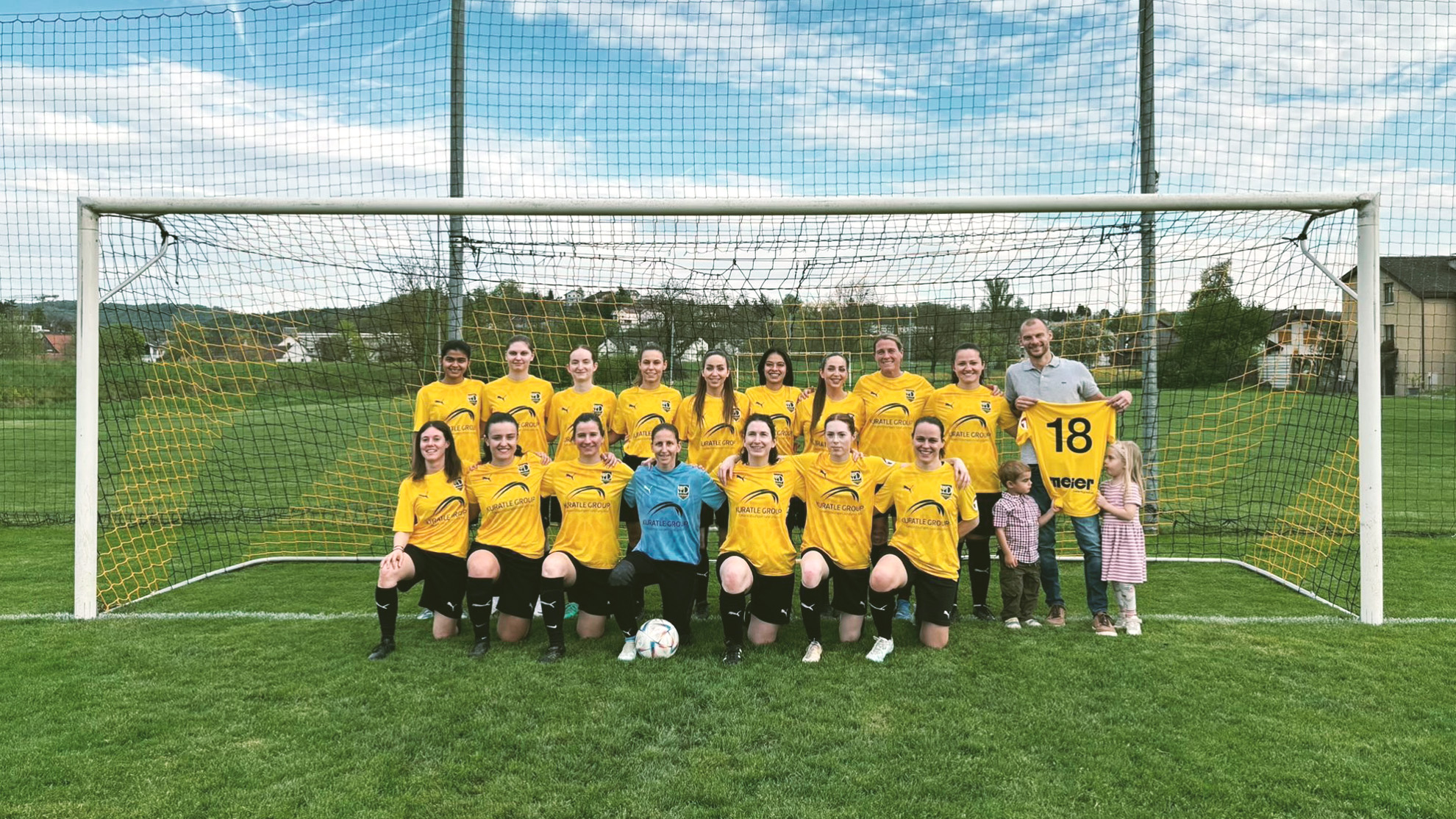 Die Frauenmannschaft des FC Döttingen freut sich an einem neuen Fussballdress. Das moderne und sehr schön gestaltete Dress verdankt die Mannschaft der Kuratle Group aus Leibstadt. Am letzten Samstag machte Roger Kuratle CEO der gesamten Kuratle Group, zu der auch die Gruppe Meier Logistik gehört, einen Besuch beim Heimspiel der Frauen. Nach einem gemeinsamen Foto mit dem motivierten Team nahm sich der sympatische, sportinterssierte Sponsor samt seiner Familie Zeit, um das Meisterschaftsspiel der Frauenmannschaft gegen die Damen das FC Schönenwerd zu schauen. Der Besuch beflügelte das Team und es konnte ein 2:0 Heimsieg gefeiert werden. Der FC Döttingen bedankt sich beim Sponsor aus der Region ganz herzlich und wünscht weiterhin gute Geschäfte.